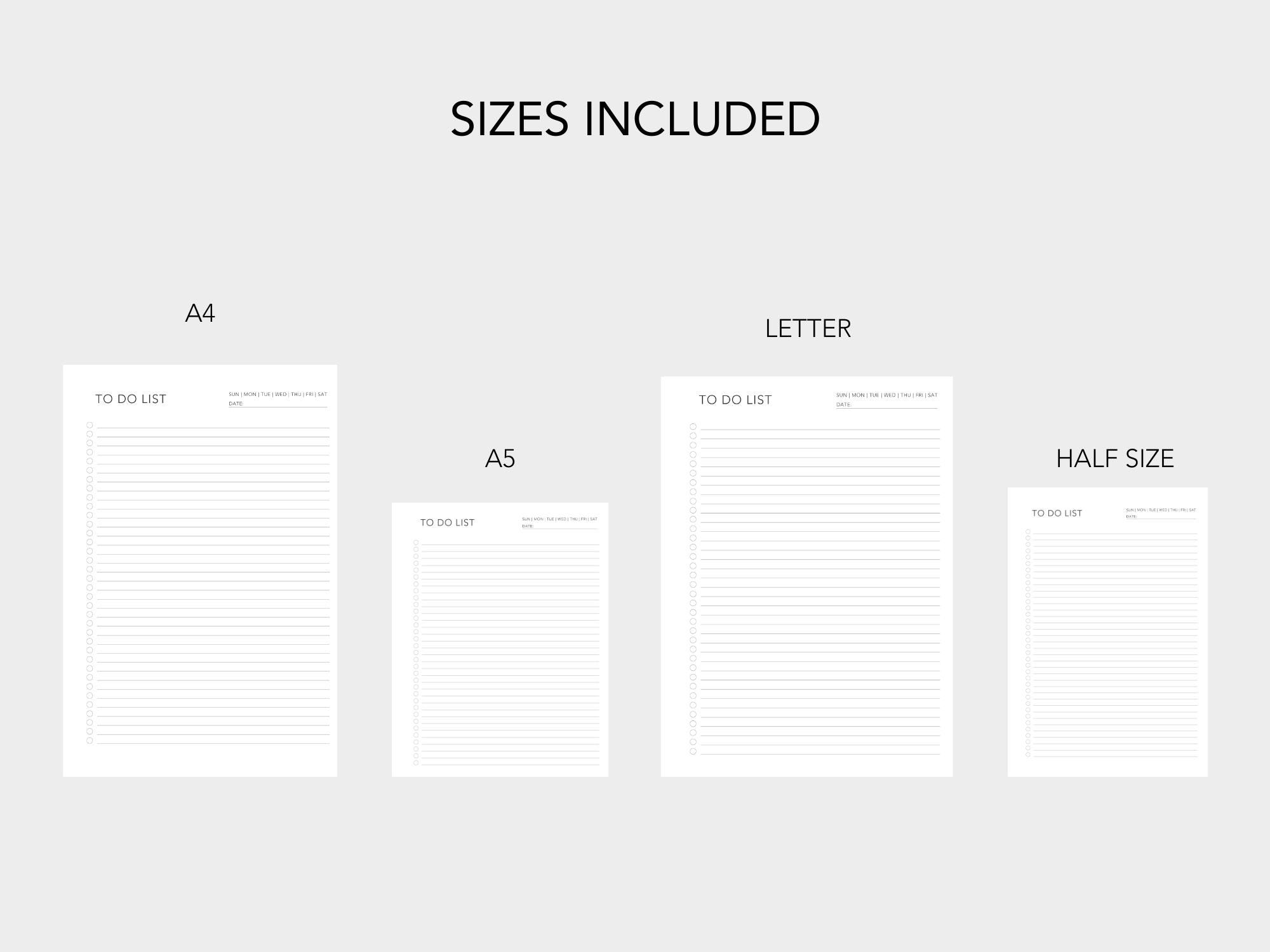 Minimalist Daily Planner Template: Printable To-Do List (A4, A5, Letter, Half Page)
