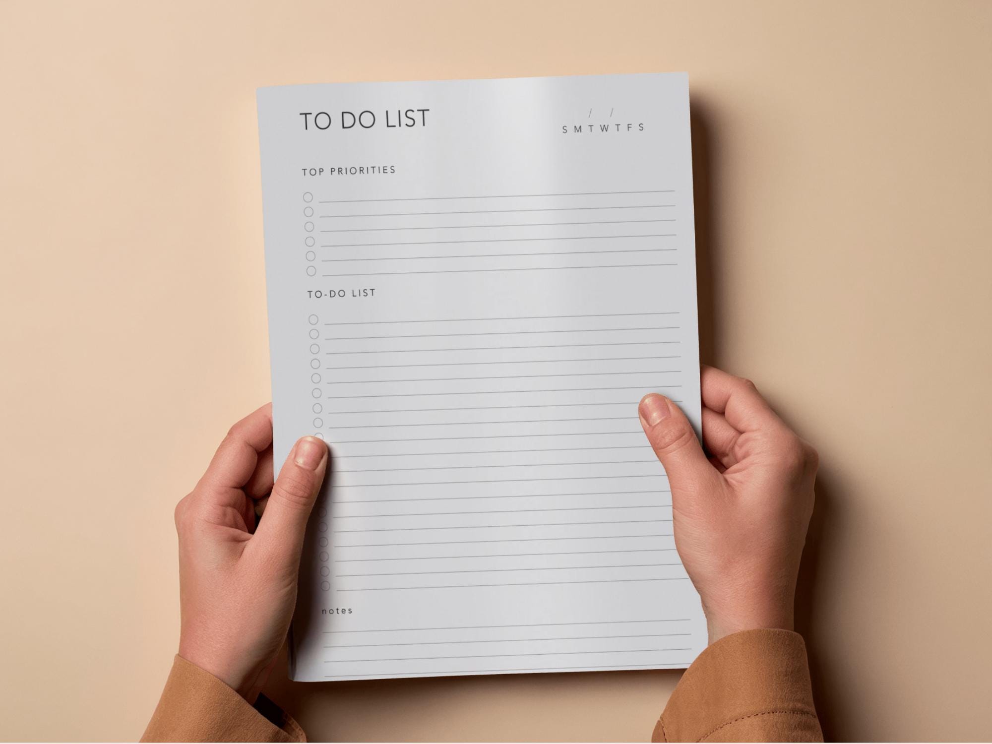 A clean, minimalist to-do list / daily planner you can print at home. This digital download includes four sizes: A4, A5, Letter, and Half Page, so you can use the format that works best for you.