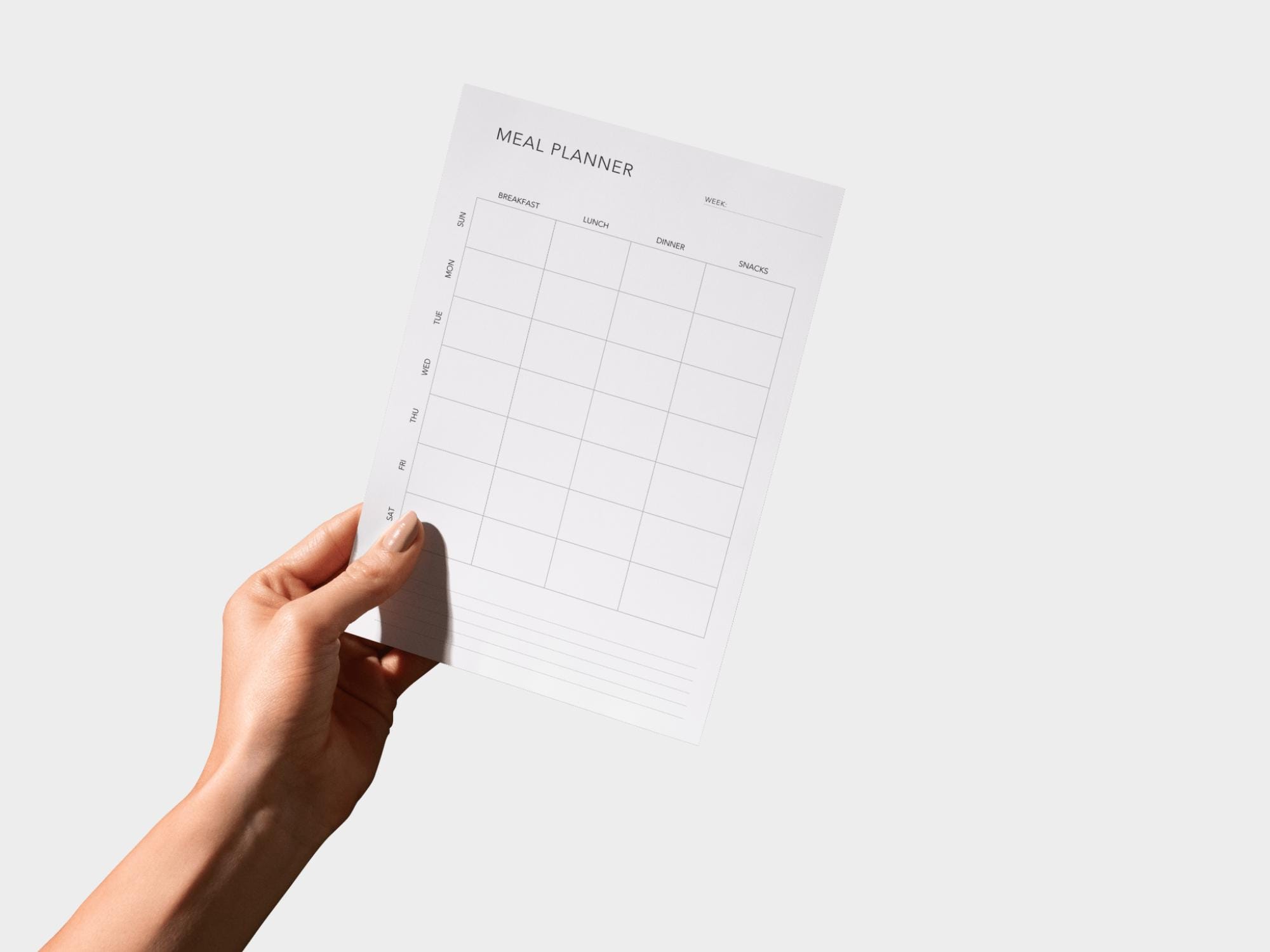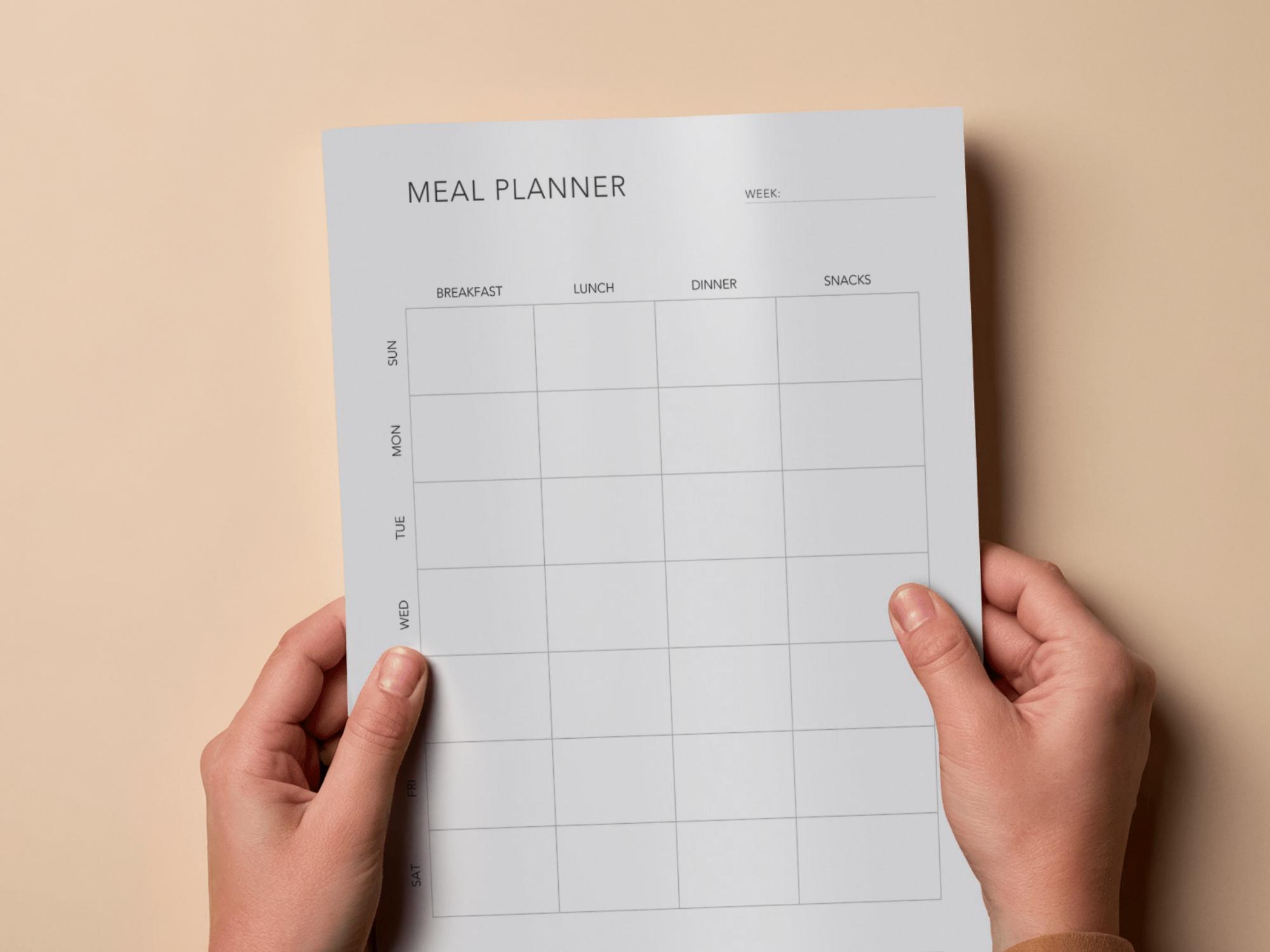 A clean, minimalist weekly meal planner designed to help you plan meals with ease and stay organized throughout the week. This printable layout includes both Sunday and Monday start options, so you can choose the format that fits your routine.