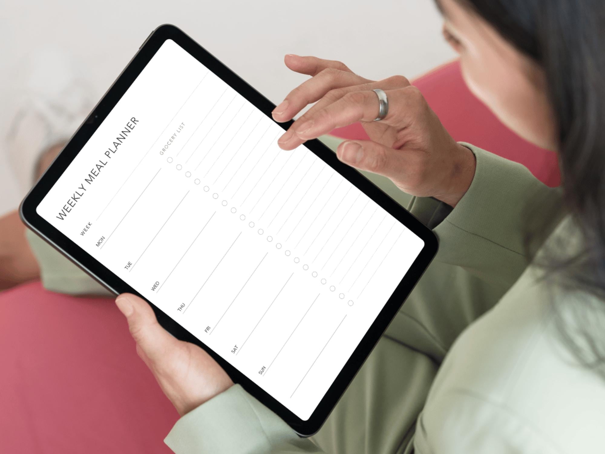 • Design features: – Clean, minimal layout – Dedicated space for daily meals – Optimized for home printing