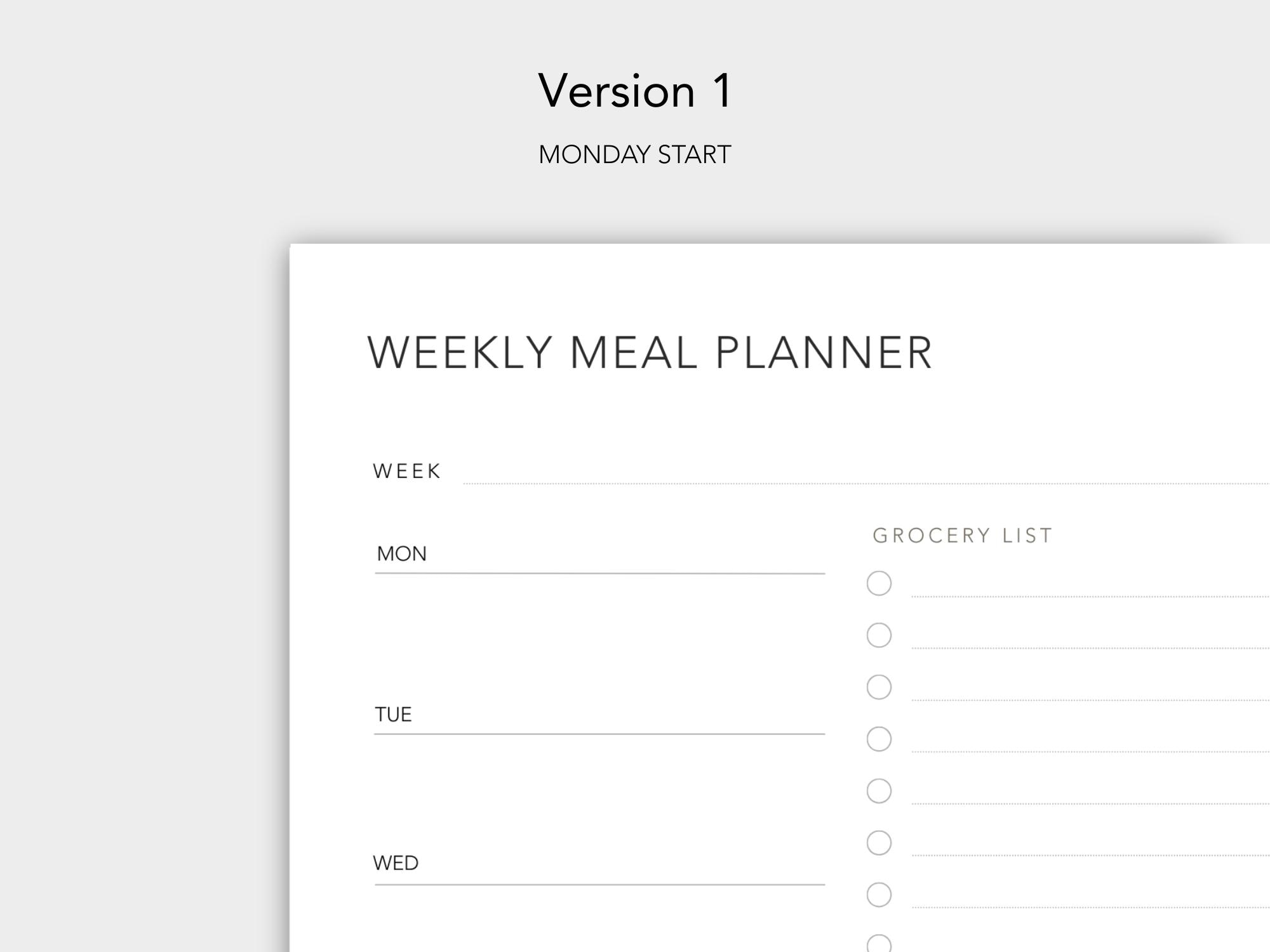 A clean, minimalist weekly meal planner designed to help you plan meals with ease and stay organized throughout the week. This printable layout includes both Sunday and Monday start options, so you can choose the format that fits your routine.