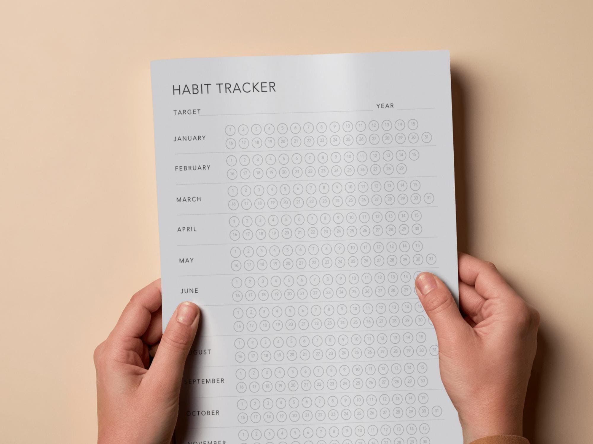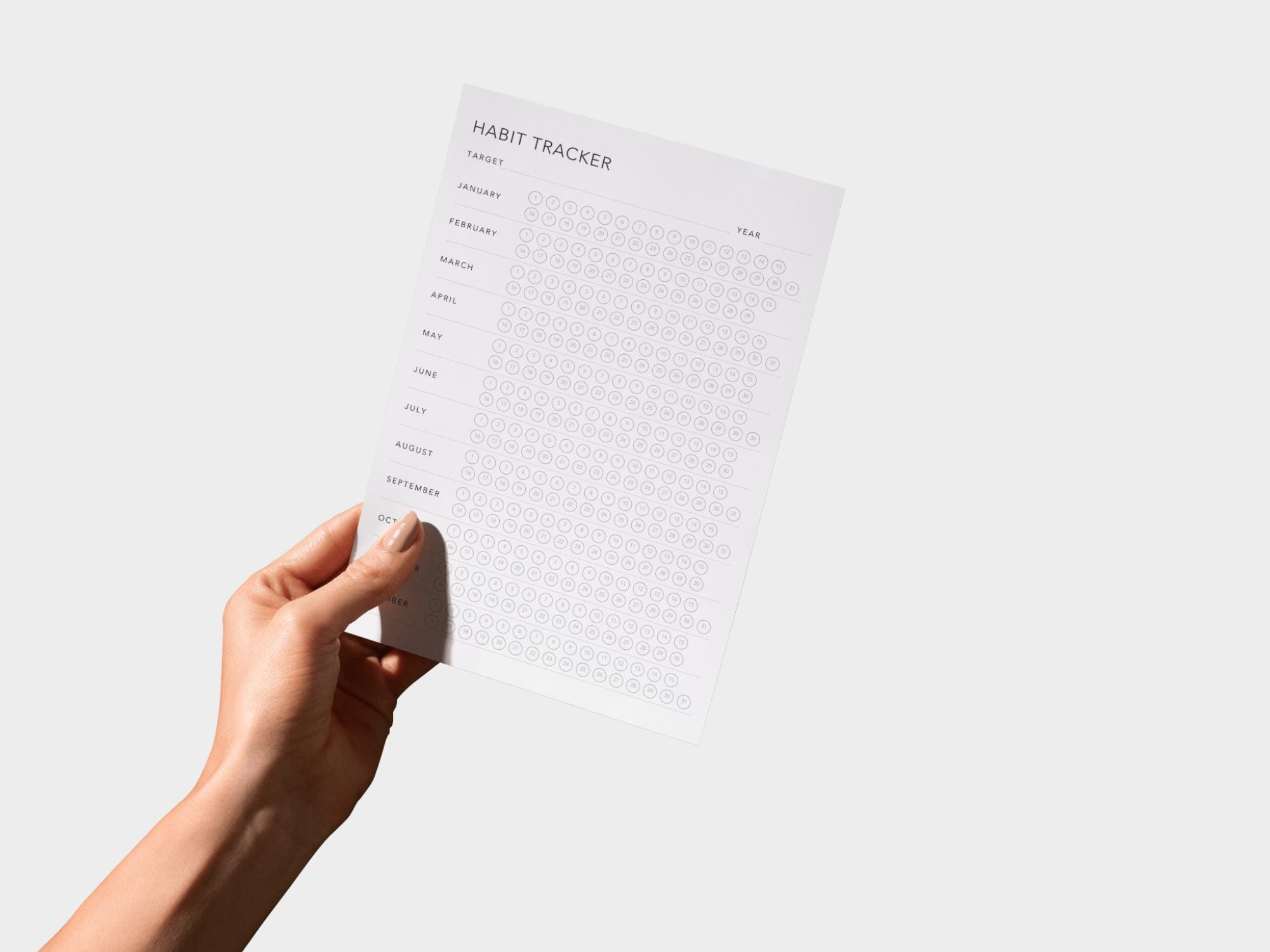 A clean, minimalist habit tracker designed to help you build consistency and track daily routines with ease. This printable layout is perfect for monitoring habits, wellness goals, or productivity routines in a simple, distraction-free format.